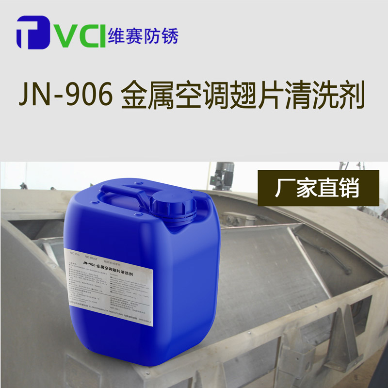 JN-906新型金屬翅片強力清潔劑是不含酸的新型金屬翅片強力清潔劑,對金屬翅片安全、無 害,能迅速徹底清除翅片表面和空調盤管上的氧化層、銹斑和其它臟污。適用于各種未經表面裝飾的翅片設備、空調盤管、鋁翅片及 其它換熱設備等。