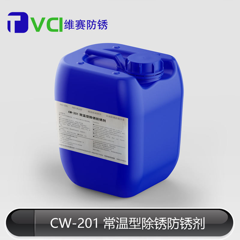 CW-201短期金屬防銹劑是由多種滲透劑、絡合劑以及強有力活性成分經過科學復配而成的一種常溫型除銹防銹劑,可在常溫下快速消除金屬表面的銹層和氧化物,除銹后的工件表面具有短期防銹功能,代替打磨、噴砂等笨重的除銹方法,不損傷工件表面,不影響加工精度。